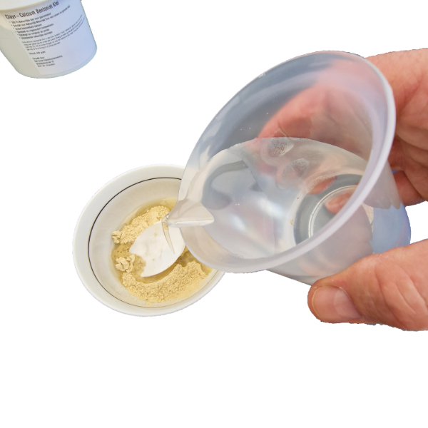 - Voeg de gewenste hoeveelheid calcium bentoniet poeder toe aan de kom. De exacte hoeveelheid hangt af van de hoeveelheid klei die je wilt maken en de consistentie die je verkiest. Begin met ongeveer 1 eetlepel poeder en pas het indien nodig aan.
