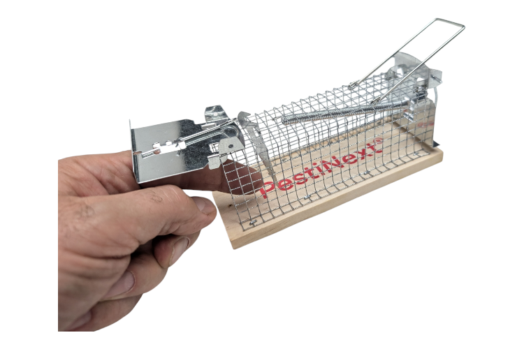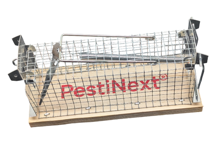 Deze vangkooi, gemaakt van verzinkt gaas met een houten bodem, is ontworpen om muizen levend te vangen. Het ingebouwde lokaasdepot maakt het gemakkelijk om de kooi met voedsel te lokken. Plaats simpelweg het lokaas, zoals kaas, pindakaas of het PestiNext® lokmiddel, aan het haakje en stel de kooi in. Zodra een muis van het lokaas eet, klapt de deur dicht en wordt de muis gevangen zonder enige schade.