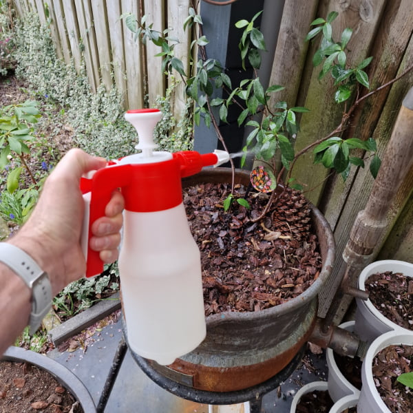 Deze Professionele Handdrukspuit pomp je op druk en daarna druk je simpelweg de sprayknop naar beneden en het sprayen gaat vanzelf. Ideaal als je meerdere planten of een groter oppervlakte wilt bespuiten.