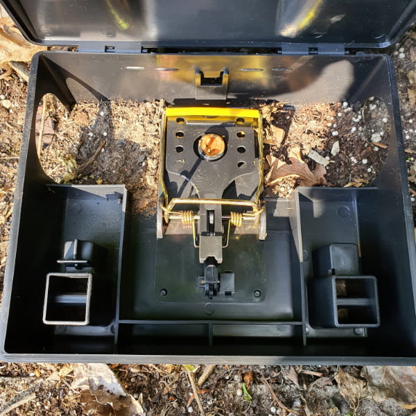 4. Stel de rattenklemmen in: Controleer of de rattenklemmen goed zijn afgesteld. Plaats de klemmen op de strategische posities binnenin de rattenvoerdoos, in de buurt van het lokaas. Zorg ervoor dat de klemmen veilig zijn ingesteld en voldoende spanning hebben om een snelle vangst te garanderen.