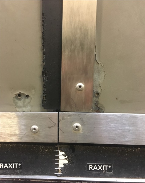 Het Santoprene™-rubber materiaal is niet bevestigd aan de aluminium strip (drager). Dit betekent dat je met de installatie in staat bent om het rubber materiaal aan te passen aan het oppervlak, nadat de aluminium drager horizontaal op het object is gemonteerd. Dit maakt het gemakkelijk om de Raxit Ready to Use-serie te monteren, zelfs in omgevingen met oneffen terrein.